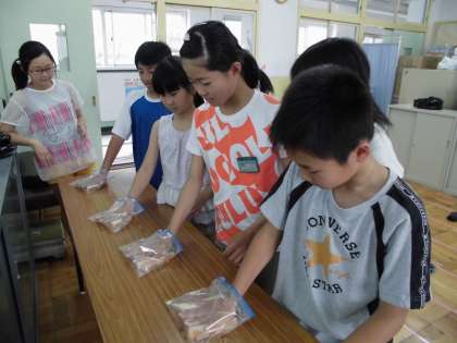 6月3日の保健委員会では,食パンを使って手のよごれを調べる実験をしました。
