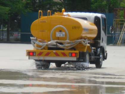 大量の薬剤が撒かれました。この効果で砂埃が抑えられるとのことです。