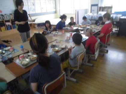 今日の給食に給食調理員さんがかしのみ学級で一緒にご飯を食べてくれました☆