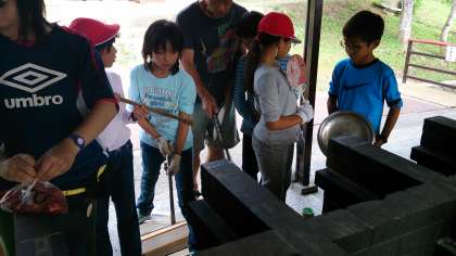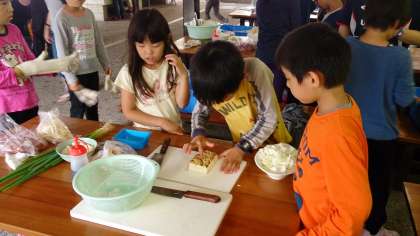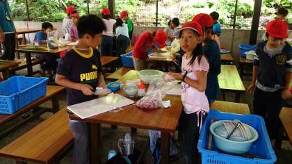 午後のメインの活動は野外炊事。学校でも練習したので,どの子も自分の役割をしっかり果たしました。