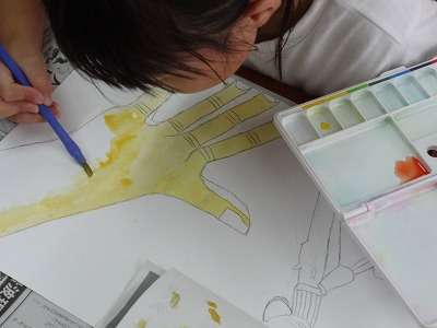 今回は手を中心に,できるだけ淡い色をぬることに挑戦しました。