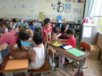 厚紙に穴を開けてストローを通してピョコピョコ動かして楽しみました。