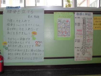 9月の詩は「腰骨を立てる」です。この詩は,毎朝の健康観察の際にクラスで読んでいます。1日1回は自分の姿勢を見直す時間を作り,自分の身体をよりよく成長させてほしいと思っています。