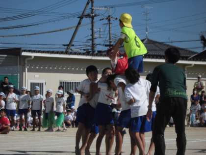 気合が入った5年生の騎馬戦。