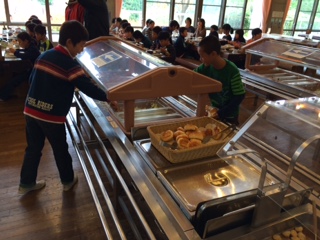 学校紹介のあとは,食堂で朝食です。山の家の朝食は格別です!