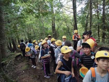 雨が心配でしたが、山登りには絶好のお天気となりました。地面のぬかるみも気にならない程度で、気持ちの良い山登りとなりました。下りは、狭い道が多く、一列でゆっくりゆっくり足元を確かめながら下りてきました。