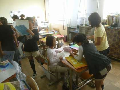 丁寧に仕上げられた作品の前で、「うまいなー!」とうなる子どもたち。