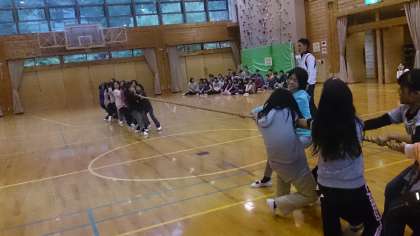 雨のため,冒険の森でのアスレチックができなくなり,体育館でスポーツ大会を行いました。