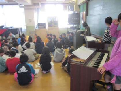 音楽では,音楽フェスティバルに向けて,学年で練習しています。今回は,テンポの速い曲の合奏があり,合わせるのに苦戦していましたが,練習を重ねるにつれて,各楽器の音色が重なり合うようになってきました。