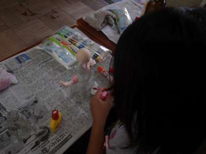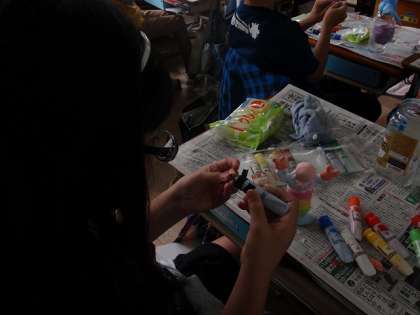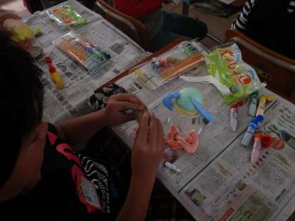 紙粘土に絵の具を混ぜて,こねこね こねこね。