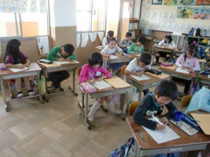 今日は,5分間集中してプリント学習しました。