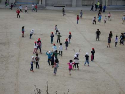 ワクワクタイムのみんな遊びでドッジボールをしています。