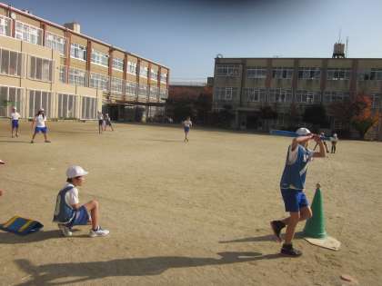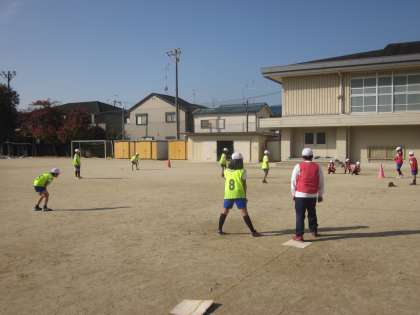 ベースボールでは,小さなボールにも少しずつ慣れ,ゲームらしいゲームができるようになりました。打つ楽しさや,追いかけ連携してボールをつなぐ楽しさを感じているようです。