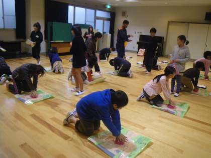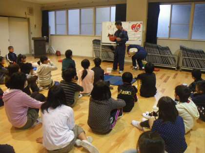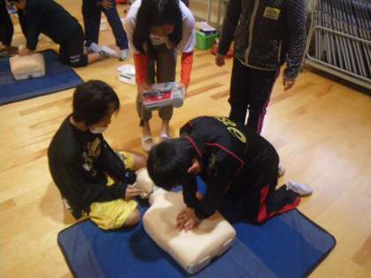 大切な命を救うために,胸骨圧迫の方法やAEDの使い方を教えてもらい,練習用キットで実践しました。