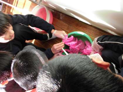 真っ白な布を染料で染めました☆