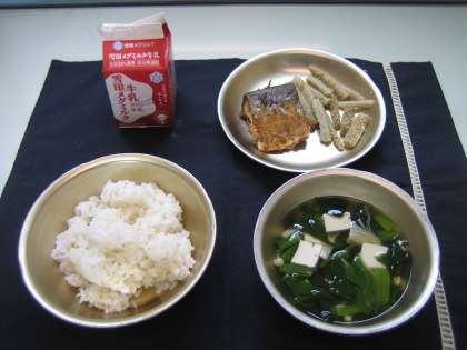 今日の給食は,麦ごはん・さばのしょうが煮・たたきごぼう・すまし汁です。