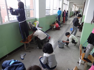 窓も新聞紙で子どもたちなりに一生懸命ふきました!