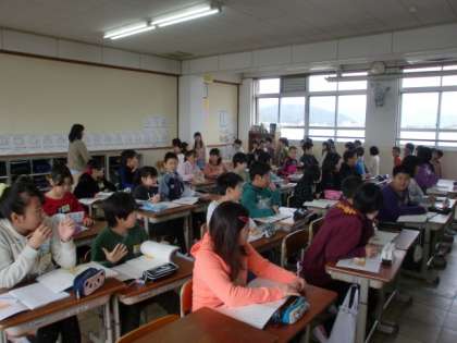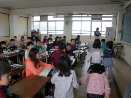 自分たちの学習を忘れて1年生の様子に見とれていました。