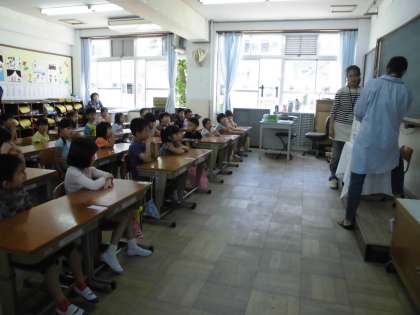 1年生の教室へ木いちごの会の方が読み聞かせに来てくださいました。