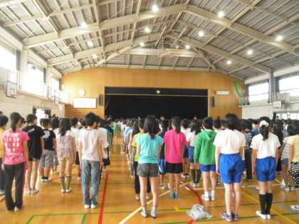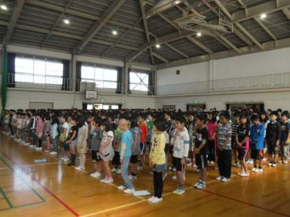 全校の子どもたちがちゃんと並んでいる,その様子を見るだけで感動です!