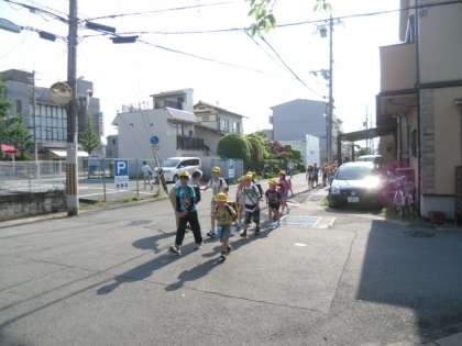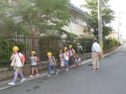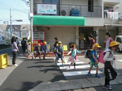台風一過,今日はいいお天気です。朝日を浴びながら,子どもたちが登校してきました。