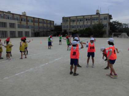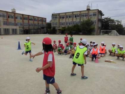 12日(火)。台風が来る前に,リレーの学習ができました。チームで準備運動を行い,走る順番を決め,まずは1回目の記録をとりました。はじめの記録を目安として,これから順番を変えたり,バトンパスの工夫をしたりして,ベスト記録を目指します。チームで声をかけ合い,がんばろう。