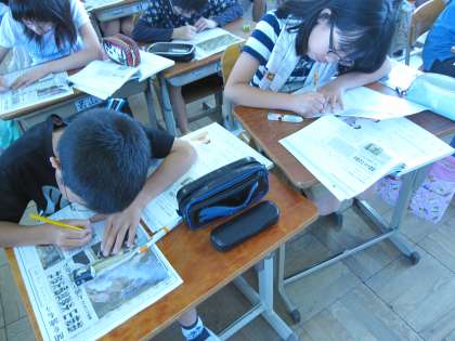 子どもたちは,普段じっくりと新聞を読むことが少ないので,読むのに苦労している子どももいましたが,記事を何度も読みながら頑張って活動していました。