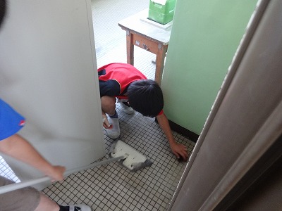 中間休みに廊下をピカピカに磨いてくれました☆