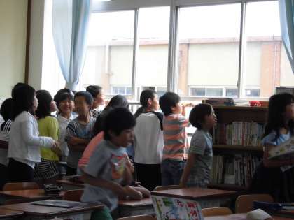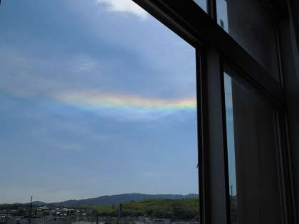 「見て見て〜!大きいにじ〜!」一気に,みんな窓に集まりました。
