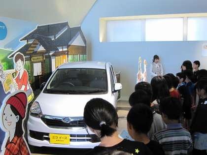 ダイハツ池田工場の展示室には,昔から今までに作られてきた車がいっぱい並んでいました!!