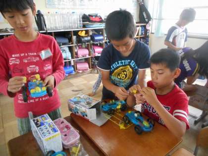 直列つなぎにしたり,並列つなぎにしたり,電流を逆に流してバックさせてみたり,いろんな走らせ方がありました。