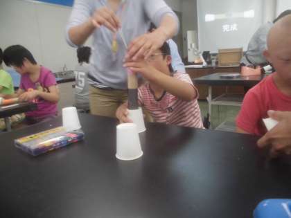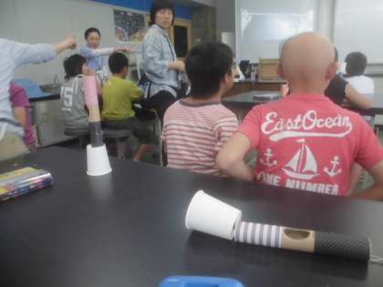 今日は高学年の実験室学習では,バネを使ったエコーマイクを作りました!