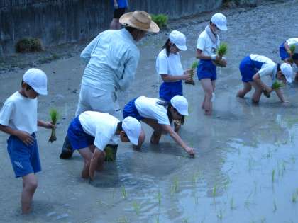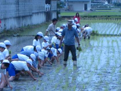 今日は先週の代かきに引き続き,田植えに挑戦しました。