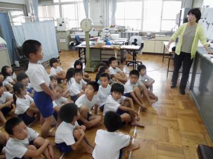 2年生は体重測定をしました。荒木先生から姿勢のお話もしていただきました。