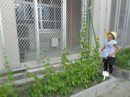 「うわー!!ゴーヤの実がなってるー!!」