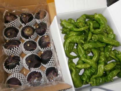 京野菜のごまみそかけには,「賀茂なす」と「万願寺とうがらし」を使用しています。
