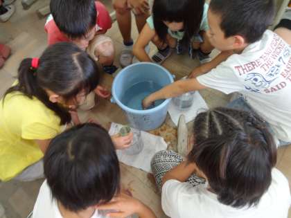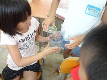 水のかさの学習です。実際にリットルますを使って,水のかさを調べました。