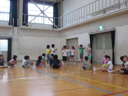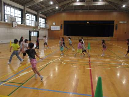 誕生日の子にインタビューをして,ドッジボールを楽しみました!