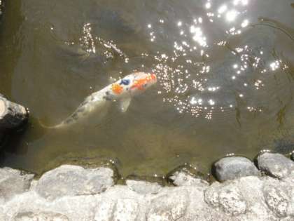 そんな中でも池の鯉たちは元気です。エサをやると猛烈な勢いで食べていました。
