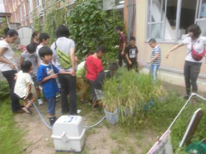 8月25日(火)今日から学校がスタートしました。そこで,夏休み中にもどんどん大きくなっていったきゅうりや,スイカの収穫をしました!大きなきゅうりを見て,子ども達は,ビックリしていました☆