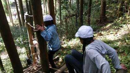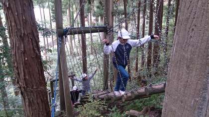冒険の森でアスレチックに挑戦です。