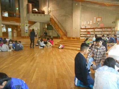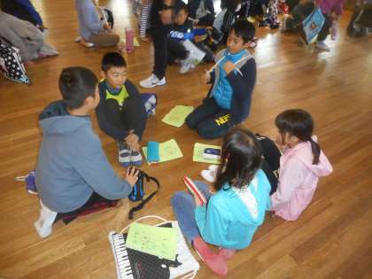 山の家での4日間全体を,各グループでふりかえっている様子です。
