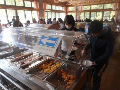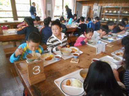 山の家で食べる最後のごはんです。みんなで楽しくいただきました。