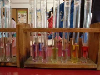 ムラサキキャベツを使って水溶液の性質を調べました。