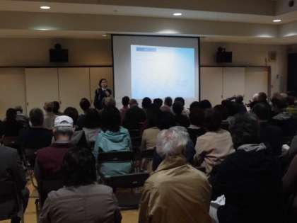 本日,小学校のミーティングルームで交通安全推進会主催の「樫原自転車安全運転教室」が開かれています。あいにくのお天気で,運動場で自転車に乗ることはできませんが,体育館で約100名の方が参加されました。
