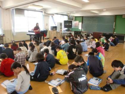 2クラス合同で音楽の学習をしました。