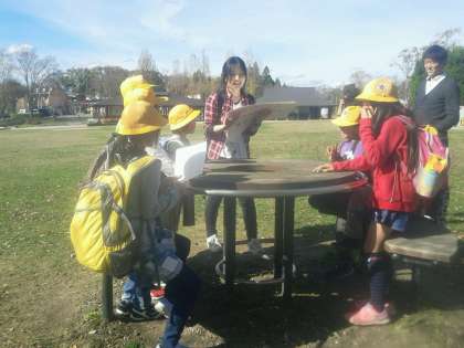 グループで協力して回っていきます。今日は,いいお天気で気持ちがいいです。
