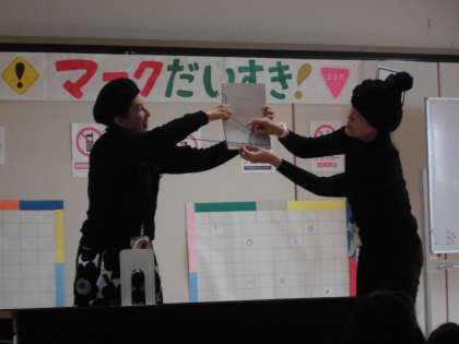 今回は,「マークだいすき!」のタイトルで,町で見かけるあんなマークやこんなマークの秘密を知る「読み聞かせ」です。