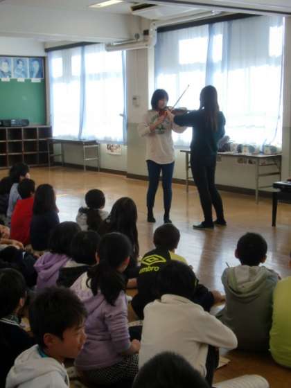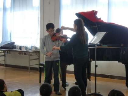音楽の時間に志水先生のバイオリンコンサートがありました。