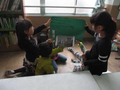 まちたんけんの発表会に向けてグループ練習をしています。